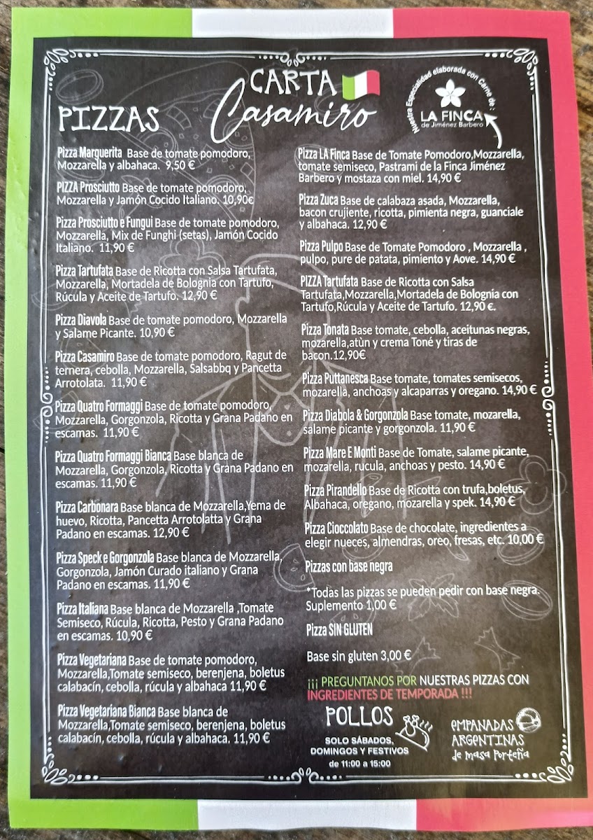 Welcome to Pizzeria Casamiro, a hidden gem nestled in C. Real, Colmenar del Arroyo, Madrid. This artisan pizzeria is renowned for its commitment to authentic flavors, featuring a menu that celebrates traditional Italian pizza craftsmanship.